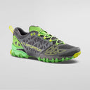 Evoluzione tecnico/estetica di Bushido, calzatura da competizione dedicata allo skyrunning: super leggera, grippante, aggressiva è concepita per garantire una perfetta stabilità in appoggio su tutti i tipi di terreni off-road. Grazie alla costruzione STB Control lo scheletro in TPU posto lateralmente sulla tomaia, scende ad avvolgere l'intersuola nella parte mediale stabilizzando la calzatura. Tale soluzione permette di ottenere una calzata più fasciante ed una maggiore stabilità generale grazie al lavoro sinergico di tomaia ed intersuola, oltre ad un alleggerimento del prodotto, evitando l'inserimento di pesanti inserti stabilizer nella parte centrale della calzatura. La suola bi-mescola FriXion Red presenta superfici di appoggio differenziate: la forma arrotondata dei tasselli esterni che salgono lateralmente a toccare l'intersuola, crea un angolo di appoggio graduale con il terreno mantenendo la stabilità anche in casi di torsioni estreme del piede. Questo permette di correre in sicurezza anche sui terreni più tecnici in presenza di radici, sassi e rami. Massimo sostegno e fasciatura sulla parte mediale del piede, libertà di movimento e comfort in punta. Il risultato è una calzatura che in puro stile La Sportiva offre soluzioni nuove alle richieste dei runners più esigenti, riscrivendo le regole del gioco con una costruzione mai vista prima nelle calzature da trail running. Bushido II: la nuova via del trail runner.