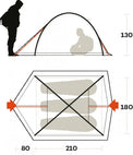 - Materiali: Doppio tetto in poliestere Diamond 70D, 75 g/m2, spalmatura poliuretanica termoisolante, impermeabilità 2.000 mm, idrorepellente | Interno in poliestere Diamond idrorepellente e traspirante | Pavimento in poliestere 70D, 85 g/m2, spalmatura poliuretanica termoisolante, impermeabilità 2.500 mm, idrorepellente | Cuciture nastrate nel doppio tetto e nel pavimento per garantire l'impermeabilità | Costruzione a tre strati per rinforzare gli angoli del catino
