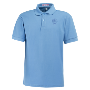Maglia modello polo manica corta realizzata in tessuto piquet, colletto con due bottoni e ricamo emblema AGESCI sul petto.